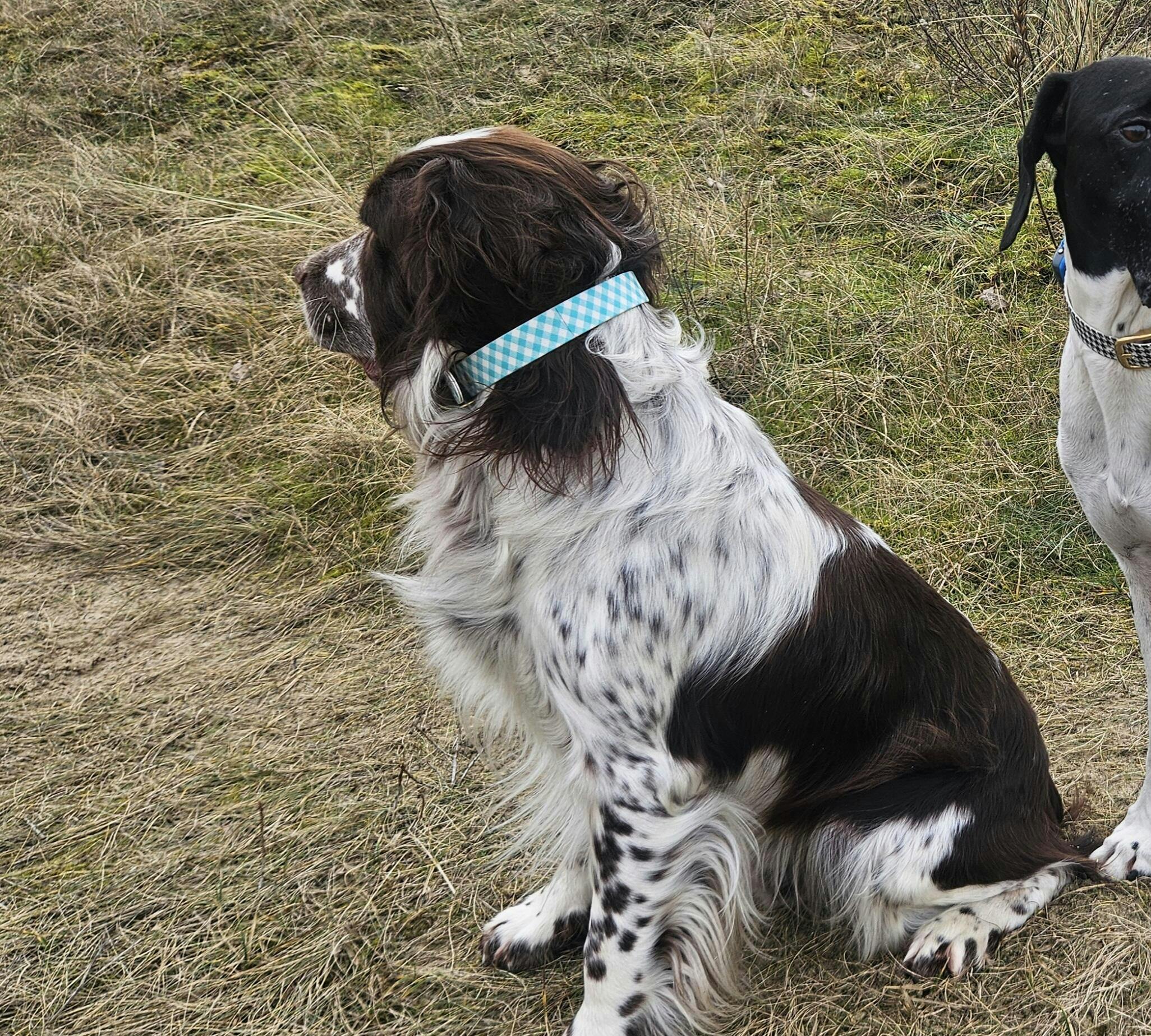Nos colliers sont confectionnés avec une sangle enduite imperméable, alliant élégance et praticité. Leur entretien facile et leur longévité surpassent celle du cuir, pour une qualité inégalée